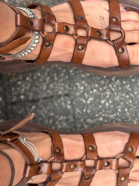 This sandal is characterized by an important volume sole and unique design, a structured and conceptual sandal that is still suitable for everyday wear. Ideal when paired with a gypsy style for a woman who wants to express her uniqueness through an outfit where the footwear dominates the scene.