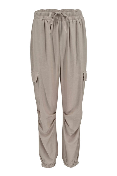 Lange broek met elastiek in de taille en in de onderkant van de broekspijpen, met extra ruimte bij de knieën en zakken aan de zijkanten